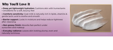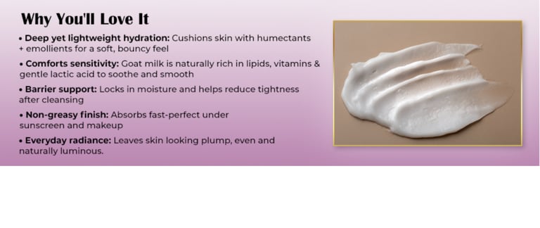 Gentle Formula: This moisturiser is made from natural goat milk, providing a gentle and nourishing formula for your skin.