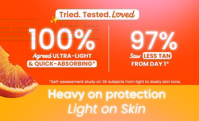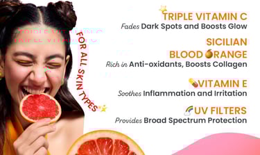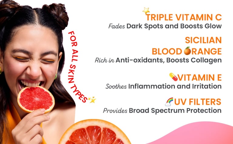 SPF 50 Sun Screen ENHANCES SKIN GLOW & RADIANCE - Infused with Triple Vitamin C & Sicilian Blood Orange to fight dullness & pigmentation while boosting collagen.
